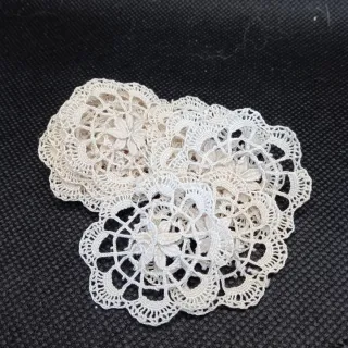 Fiorellino Al Tombolo colore Écru. Lavorazione artigianale. Disponibilità 12 pezzi. Nuovi. Bellissimi da inserire in una tovaglia. tende, da appendere ,in asciugamani e tanti altri modi. Prezzo € 10 al pezzo