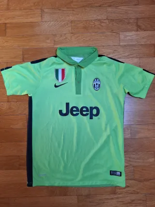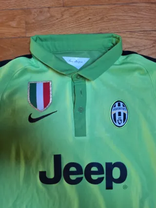 Maglia da calcio Juventus uomo, stagione 2014-15. Colore verde fluo con inserti neri. Età 12-13 anni Taglia 147 cm -158 cm - Logo Juventus sul petto. - Sponsor Jeep. - Logo Nike. - Patch Tricolore.