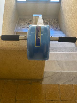 Attrezzo per allenare gli addominali, ideale per esercizi a casa. - Colore: blu trasparente - Manici imbottiti per una presa comoda - Ruota singola