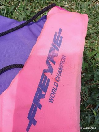 Vendo giubbotto salvagente Freyrie, modello World Champion. Si presenta in buone condizioni, con qualche segno di usura. - Colore rosa e viola. - Con coulisse. - Marchio Freyrie ben visibile.
