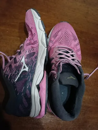 Scarpe da running Mizuno Wave Ultima 12 da donna. - Colore rosa con dettagli neri e grigi. - Tomaia in mesh traspirante. - Logo Mizuno sul lato.