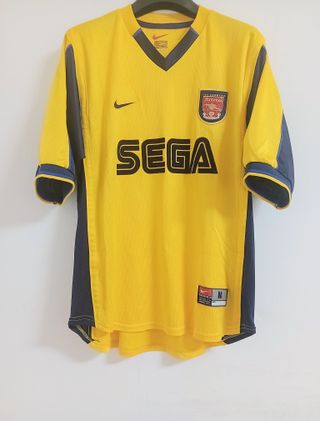 Storica maglia con la quale l'Arsenal raggiunse il 2° posto in Premier League e la finale di Coppa Uefa nella stagione 1999/00 Logo Nike e stemma Arsenal ricamati. Sponsor Sega in flock, applicato. Maglia in eccellenti condizioni. Indossata da giocatori come Davor Suker, Silvinho, Grimandi, Luis Boa Morte, Parlour - Taglia M.