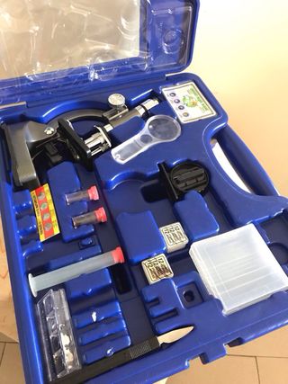 Set completo per esperimenti scientifici con microscopio. - Microscopio con zoom 200x-1200x. - Custodia blu per trasporto e conservazione. - Accessori inclusi per osservazioni. - Microscopio in metallo manca qualcosa di poca importanza per questo motivo il prezzo basso 😅