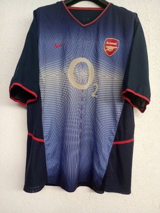 Maglia da trasferta indossata tra le stagioni 2002/2004 quando l'Arsenal arrivò secondo in Premier League e vinse la finale di FA Cup del 2003, battendo il Southampton 1-0 con Robert Pires. L'Arsenal vinse poi la Premier League nella stagione successiva dopo aver concluso la stagione con un record imbattuto per la prima volta nella massima serie del calcio inglese dai tempi del Preston North End nella stagione 1888-89, guadagnandosi il soprannome di The Invincibles, giocatori di spicco Gilberto, Cole, Henry, Edu, Aliadiere Taglia L