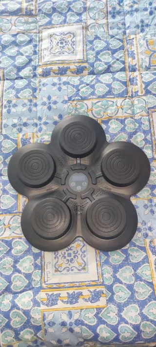 Set per allenamento di boxe composto da una macchina elettronica e guanti. - Macchina con display digitale e pulsanti. - Cinque aree di battuta circolari. - Guanti da boxe rosso.