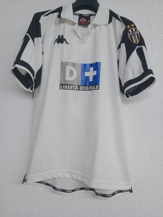Maglia Kappa della Juventus stagione 1998/2000 da trasferta. Logo societario ricamato. Terza divisa. In rosa, quella stagione, calciatori del calibro Del Piero, Zidane, Henry, Inzaghi, Davids, Conte, Ferrara. Taglia M