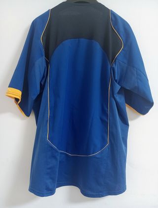Maglia Third Fc Barcellona prodotta dallo sponsor tecnico Nike nella stagione calcistica del 1998/200 Modello colore arancione con inserti blu e rossi. Al centro lo stemma della squadra Fc Barcellona e il logo dello sponsor tecnico Nike ricamato. Patch LFP presente sulla manica. Taglia M