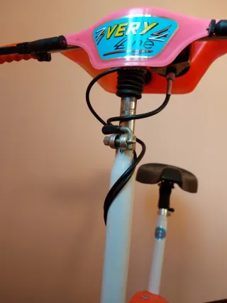 Cyclette vintage funzionante dal design retrò e colorato. Perfetta per un tocco di stile in casa. - con contachilometri - Manopole rosa. - Dettagli in azzurro sul manubrio. - Struttura principale rosa e bianca. No spedizione