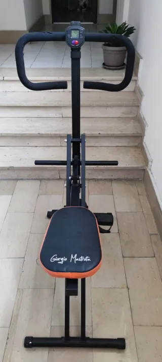 Attrezzo per allenarsi a casa, ideale per un workout completo - Struttura in metallo nero - Sedile imbottito arancione - Pedali per il movimento Attrezzo mai usato, come nuovo. Scrivimi per altre foto o info