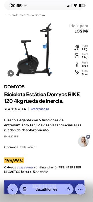 Bicicleta Estática Domyos Bike 120 come nuova