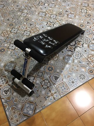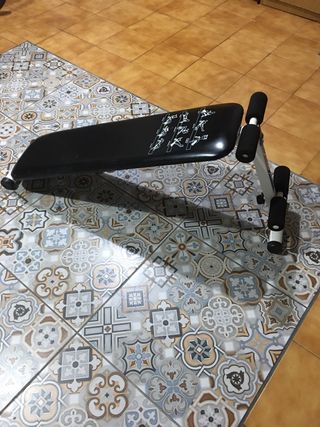 Panca per esercizi per allenare gli addominali. Design compatto e funzionale. Struttura in metallo. Imbottitura per maggiore comfort.