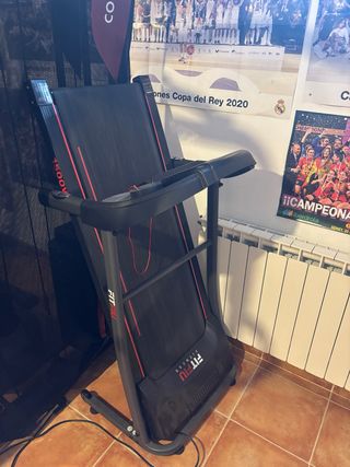 Tapis roulant FITFIU in colore nero con dettagli in rosso. È un'attrezzatura fitness per la casa. Modello: FITFIU FITNESS. Potenza: 1500W.