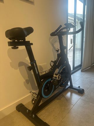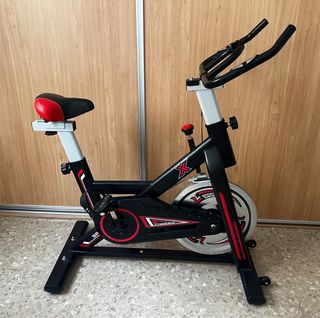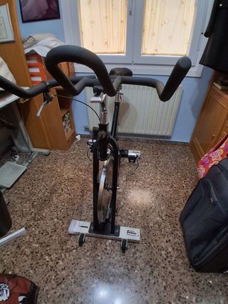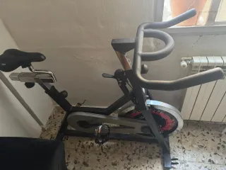 Bicicletta da spinning praticamente nuova, per allenamenti a casa. Progettata per offrire un'esperienza di ciclismo indoor. Struttura robusta in acciaio. Sella regolabile in altezza e profondità. Manubrio ergonomico. Ruota ad inerzia per resistenza.