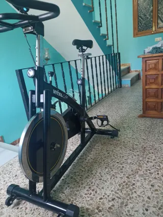 Bicicleta da spinning del marchio Vitalgym, ideale per gli allenamenti a casa. Il suo design robusto e stabile la rende perfetta per sessioni intense. - Manubrio regolabile. - Sella ergonomica. - Ruote per un facile trasporto. Ha un display che conta chilometri, calorie, tempo... prezzo negoziabile
