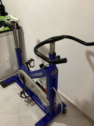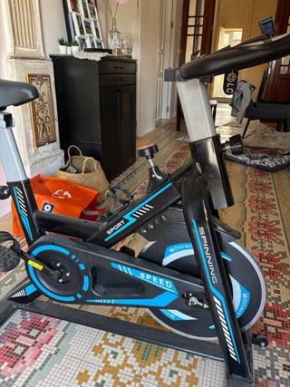 Bicicletta da spinning in colore blu, ideale per gli allenamenti a casa. Per maggiori informazioni scrivi al numero 657219622. Struttura robusta e stabile. Disco di inerzia. Sella regolabile. Manubrio regolabile.
