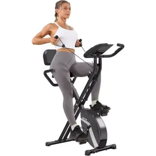 Bicicletta statica per allenamenti a casa. Design moderno e compatto. Sella regolabile in altezza e profondità. Manubrio ergonomico. Portaborraccia integrato.