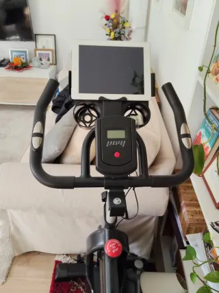 Bicicletta da spinning per allenamenti a casa. Progettata per offrire un'esperienza di ciclismo indoor. - Manubrio ergonomico. - Sella regolabile in altezza e profondità. - Display digitale per il monitoraggio delle metriche. - Pedali con presa. - Volano per resistenza. In ottime condizioni.