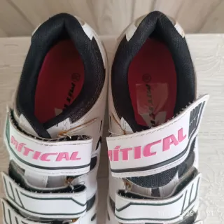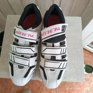 Sneakers da ciclismo MÍTICAL in bianco, ideali per spinning o bicicletta. - Chiusura con velcro. - Design sportivo. - Suola resistente. Ci sono due paia: quelle con la scritta in rosa numero 39 e le altre numero 45