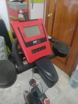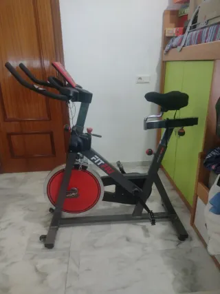 Bicicletta spinning del marchio Fitfiu. Ideale per allenarsi a casa. Manubrio con supporto per cellulare o tablet. Pedali con cinturino di sicurezza. Ruote anteriori per un facile trasporto. Come nuova. Ritiro a mano. Design robusto e stabile. Volante di inerzia rosso. Sella regolabile in altezza e profondità. Manubrio regolabile in altezza.