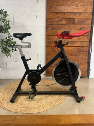 Bicicleta de spinning della marca BENCHMARK, completamente nuova e senza uso. Design robusto e moderno. Sedile regolabile in altezza e profondità. Manubrio ergonomico. Pedali con presa. Ruota d'inerzia per un pedalata fluida.