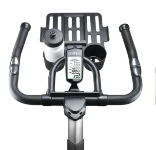 Bicicletta da spinning modello Sport, ideale per allenamenti a casa. Design robusto e stabile. Manubrio regolabile. Sedile comodo e regolabile. Portaborraccia integrato.