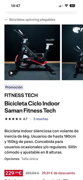 Bicicletta spinning del marchio Cecotec in ottime condizioni. Include schermo ma necessita di batterie. Sella con alcuni fori ma funzionale. Possibilità di spedizione a domicilio nelle zone di Morrazo, Pontevedra e Vigo.