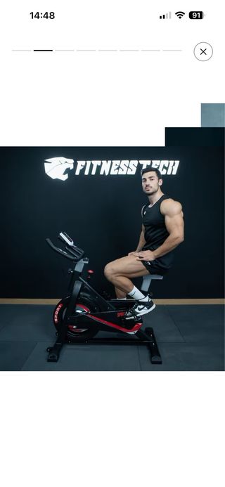 Bicicletta da ciclo indoor Fitness Tech, modello Saman. Ideale per allenamenti a casa. - Volano di inerzia da 6kg. - Progettata per utenti fino a 180cm e 150kg. - Sella comoda e regolabile in 8 altezze.