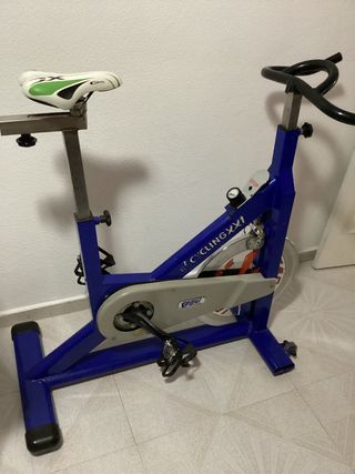 Bicicleta per spinning della marca Spinner. Ideale per allenamenti cardiovascolari a casa. Design robusto e stabile. Manubrio regolabile. Sella comoda e regolabile. Come si vede nella foto, ha un pedale montato, necessaria una messa in funzione. Vendita urgente.