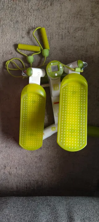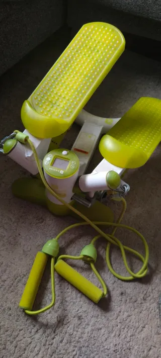 Prezzo negoziabile. Versatilità: Consente un movimento di marcia laterale (twist) che tonifica glutei e cosce, e viene con bande elastiche per allenare contemporaneamente la parte superiore del corpo (spalle, petto e braccia), offrendo un allenamento completo. Monitoraggio: Include una console digitale che mostra parametri essenziali come il numero di ripetizioni, la durata dell'esercizio, la frequenza e le calorie bruciate, ideale per il monitoraggio dei progressi. Design compatto: Le sue dimensioni e il peso leggero (7 kg) facilitano il suo stoccaggio. Progettato per utenti fino a 100 kg.