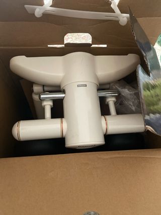 Stepper di Decathlon, ideale per l'esercizio a casa. Nuovo e mai utilizzato. Colore bianco e blu. Con manubrio per maggiore stabilità.