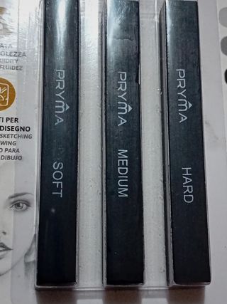 Confezione da tre carboncini da disegno in tre diverse gradazioni: soft, medium e hard. Lunghezza 8cm, confezione nuova e mai aperta...