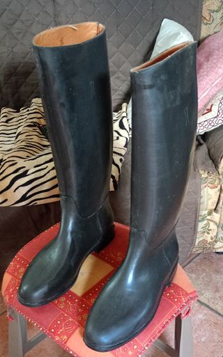 Stivali alti da equitazione in gomma, perfetti per la stagione autunnale. Sono due paia di stivali neri, in buone condizioni, ideali per chi pratica equitazione. - Colore nero - Materiale: gomma - Altezza: alta - Perfetti per equitazione Misura 44/45