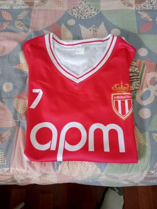 Vendo maglia da calcio dell'AS Monaco. È a maniche corte, di colore rosso e bianco, con il logo del club e lo sponsor APM. Il numero 7 è stampato sulla maglia. - Maglia in ottime condizioni. - Taglia L - Un solo articolo.