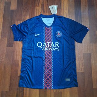 Vendo maglia da calcio del Paris Saint-Germain, stagione 2025/26, sponsor Qatar Airways. La maglia è blu scuro, con dettagli rossi e bianchi. - Maglia a maniche corte. - Sponsor Qatar Airways ben visibile. - Stemma del PSG sul petto. - Nuovo con cartellino.