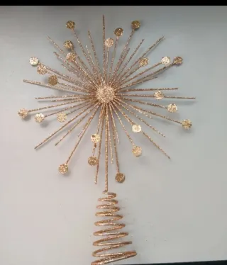 Splendido puntale per albero di Natale a forma di stella, con finitura glitterata dorata. - Design a raggiera. - Base a spirale per un facile fissaggio. - Dettagli scintillanti.