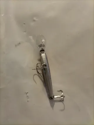 Esca artificiale per la pesca a spinning. - Colore bianco perlescente. - Design a forma di pesce. - Dotata di due ancorette.