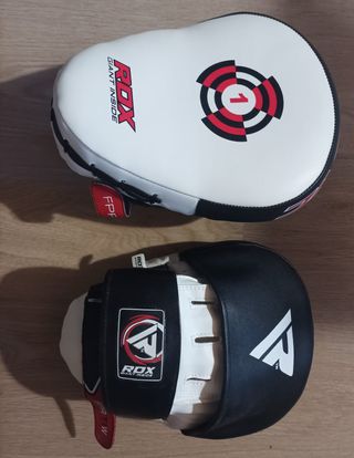 Coppia di colpitori ROX per allenamento di boxe e kickboxing. Realizzati in materiale resistente. - Design ergonomico. - Chiusura regolabile. - Logo ROX visibile.