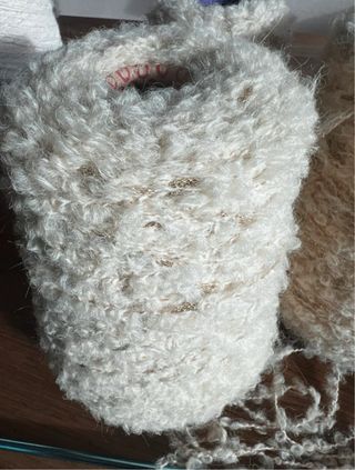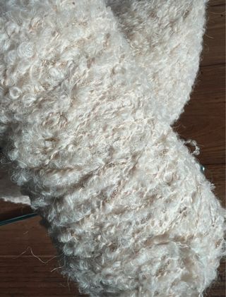 Filato bouclé color panna con riflessi dorati. • ideale ferri 5/5,5 • peso 1100gr • per riferimento colore guardare l'ultima foto Seguimi per altri filati.🧶✨
