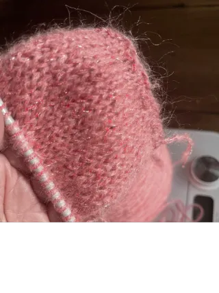 Gomitolo di filato mohair color rosa con filo glitterato. Ideale per creazioni di abbigliamento e accessori. - Composizione: Mohair con glitter. - Colore: Rosa mohair. -colore:rosa antico,argento il glitter. Sufficiente per realizzare un maglione. Usato ferri da maglia 5.