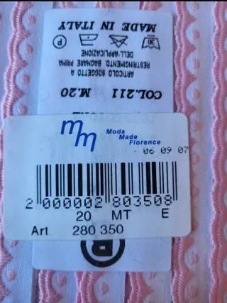 Nastro in tessuto con fantasia floreale su sfondo rosa. Misura 2.50 - Motivo con fiori e foglie. - Bordi rifiniti.