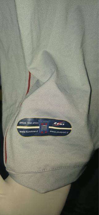 Maglia da calcio del Crotone, originale Zeus, nuova con cartellino. - Colore grigio con dettagli blu e rossi. - Manica lunga. - Logo Zeus e stemma del Crotone sul petto.