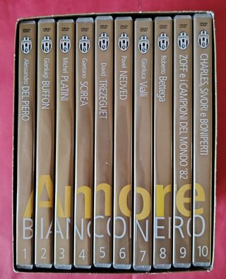 Box set Amore Bianconero della Juventus, composto da 11 DVD. - Alessandro Del Piero - Gianluigi Buffon - Michel Platini - Gaetano Scirea - David Trezeguet - Pavel Nedved - Gianluca Vialli - Roberto Bettega - Zoff e i Campioni del Mondo '82 - Charles, Sivori e Bonperti