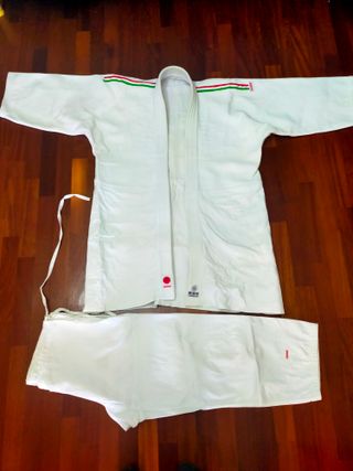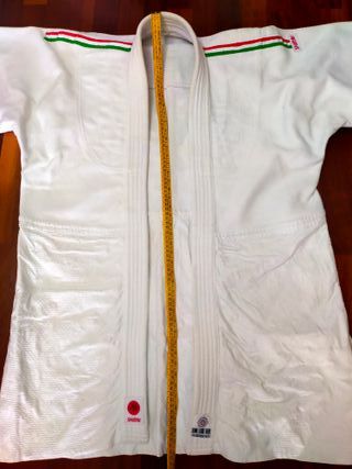 Vendo judogi SHIMAI originale, acquistato a metà anni ’90 presso Ju‐Te Sport, storico negozio specializzato di Milano. Modello old‐school, molto robusto, (peso 2kg/2.2kg) categoria agonistico 900–950 g/m2 con trama a chicco di riso su tutta la parte superiore, bavero e colletto rinforzati, cuciture nella parte posteriore. Qualità costruttiva superiore ai judogi moderni leggeri. - Ideale per pratica tradizionale, allenamento avanzato o collezione. - Condizioni ottime per l’età, nessuno strappo o scucitura. Judogi di qualità come questo non si trovano più facilmente: costruzione solida, stile classico e grande durata.