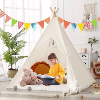 Tenda teepee perfetta per creare uno spazio magico per i bambini. - Design a forma di tenda indiana. - Ideale per il gioco e la lettura. - Materiale in tessuto resistente.