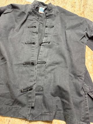 Kimono giacca e pantalone ideale per arti marziali. - Chiusura con bottoni a strozzo. - Collo alla coreana. - Maniche lunghe - Aperture laterali sul fondo.