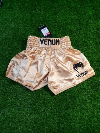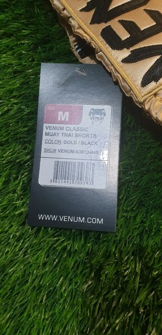 Pantaloncino Venum Kick-thai Gold/Black, taglia M, nuovo in confezione originale.
