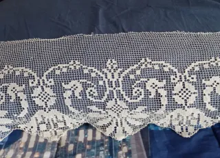 Bellissimo bordo in pizzo fatto a tombolo, un vero pezzo vintage. Probabilmente risalente ai primi anni del 1900. - Lavorazione artigianale. - Motivo floreale intricato. - Ideale per decorazioni tessili.
