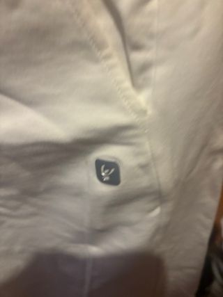 Pantaloncini sportivi bianchi, comodi e versatili. - Banda laterale rossa con logo. - Tasche laterali. - Vita elasticizzata.