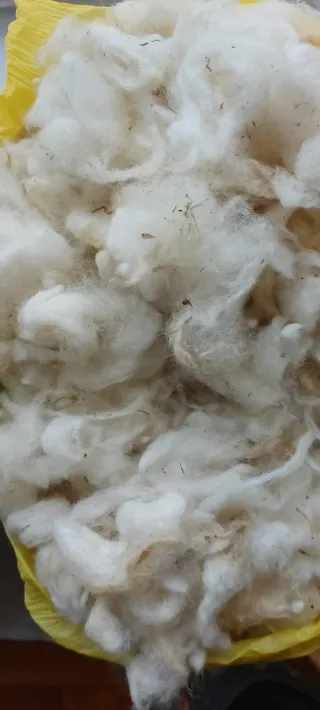 1,5 kg. di pura lana italiana. È lavata, priva di cattivi odori e NON proviene da vecchie imbottiture, è lana nuova da cardare e ottima per feltro, filatura, bambole, esperimenti di tintura, imbottiture, per uso didattico o hobby. Tra le fibre sono ancora presenti frammenti di paglia.