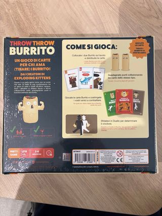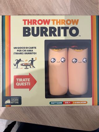 Gioco di carte Throw Throw Burrito, perfetto per chi ama il divertimento e le sfide. - Ideale per feste e serate tra amici. - Età consigliata: 7+. - Da 2 a 6 giocatori. - Dai creatori di Exploding Kittens.